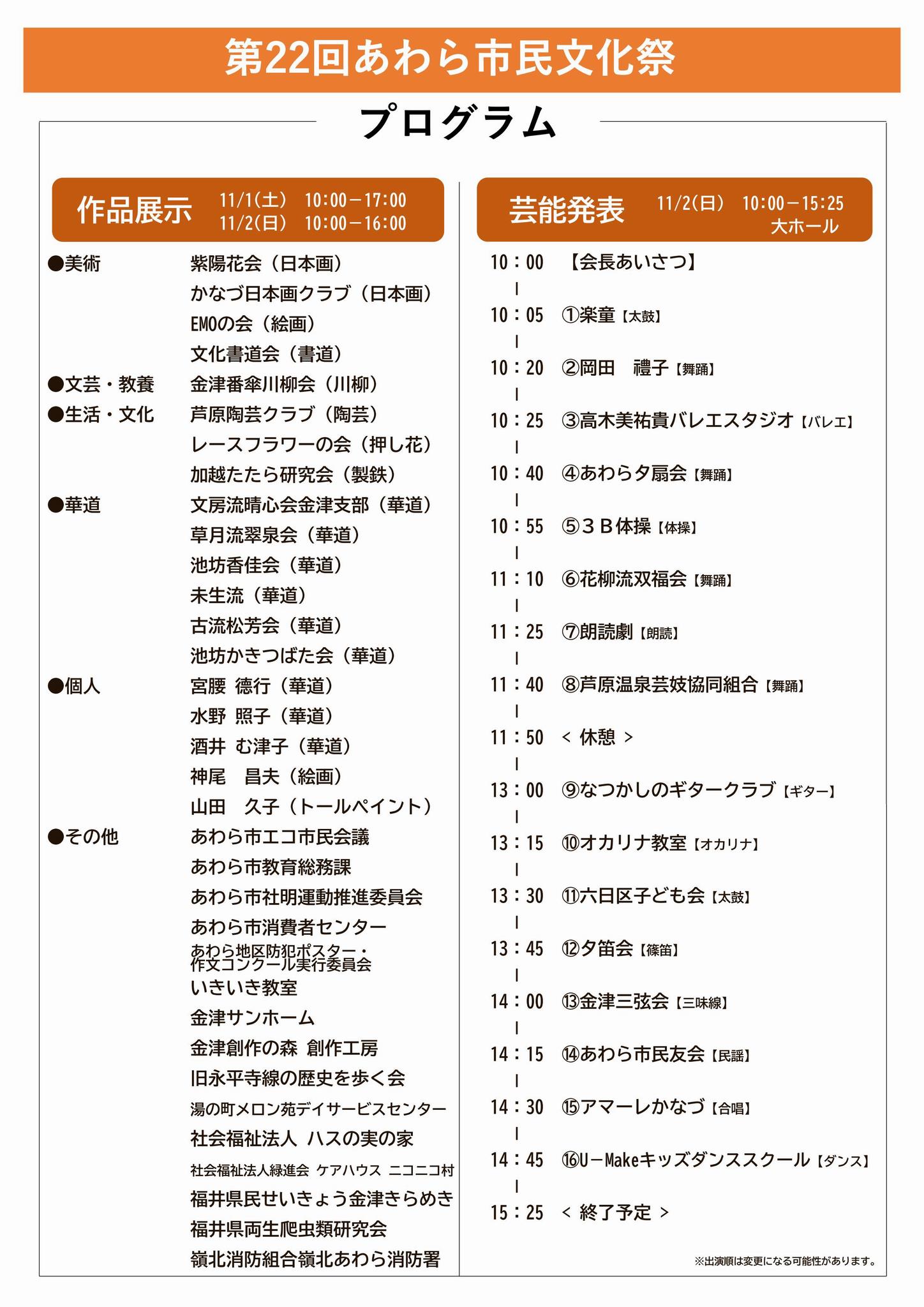 第22回あわら市民文化祭 【文化の秋を楽しんで!】