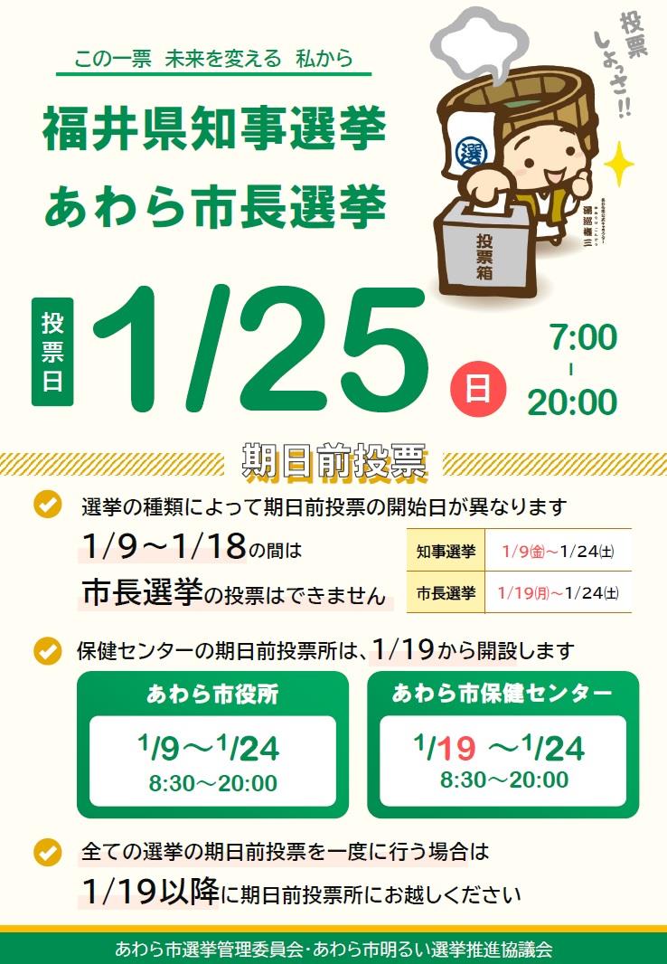 - 福井県知事選挙・あわら市長選挙