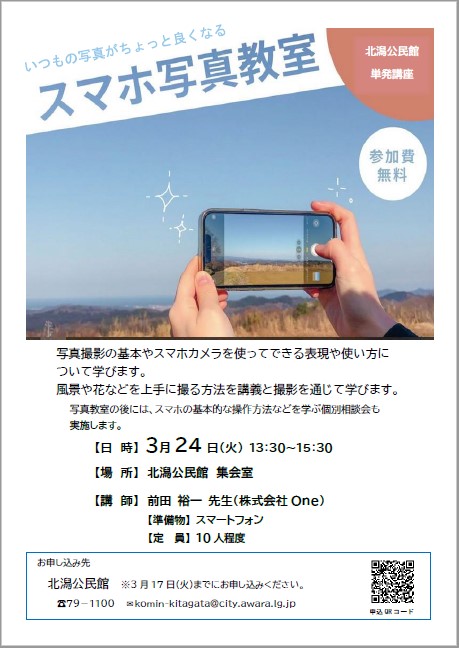 北潟公民館単発講座「スマホ写真教室」のご案内
