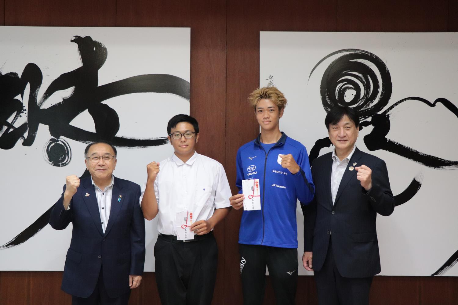 選手が「楽しんで試合に臨みます。」と意気込みを語ると、森市長は「無理せず、自分のペースで戦ってきてください。健闘を祈っています。」と励ましの言葉を贈りました。