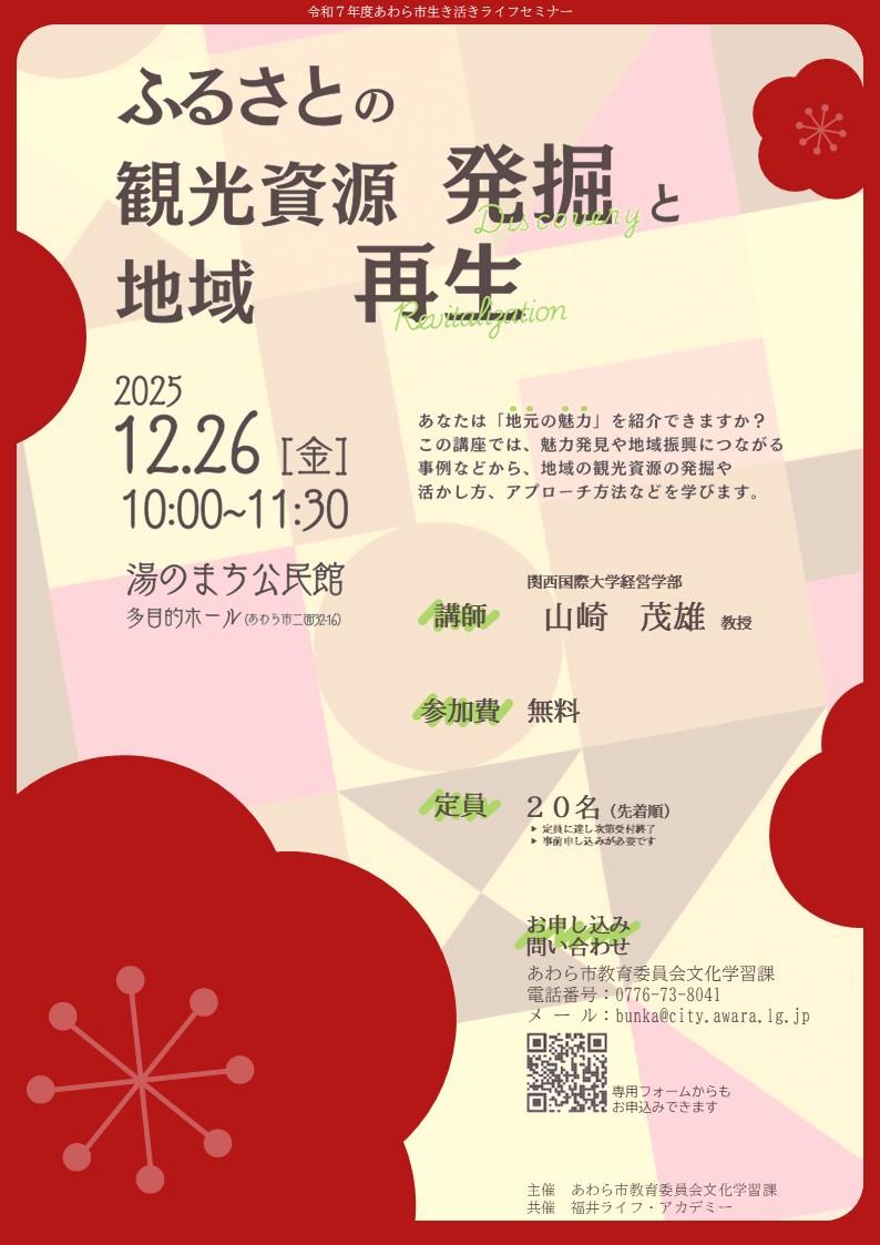 令和7年度生き活きライフセミナー(あわら市民大学講座)について