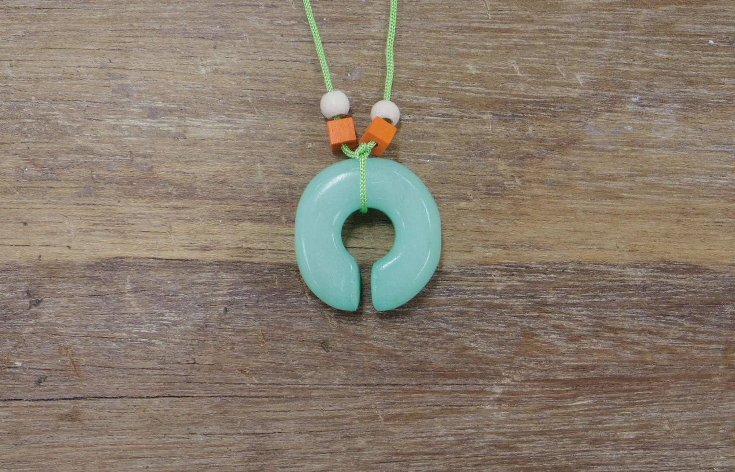 石を削ったり磨いたりし、縄文ピアスの形を作ります。その後、好きな色をつけ、ビーズで飾り付けをし、ペンダントに仕上げます。