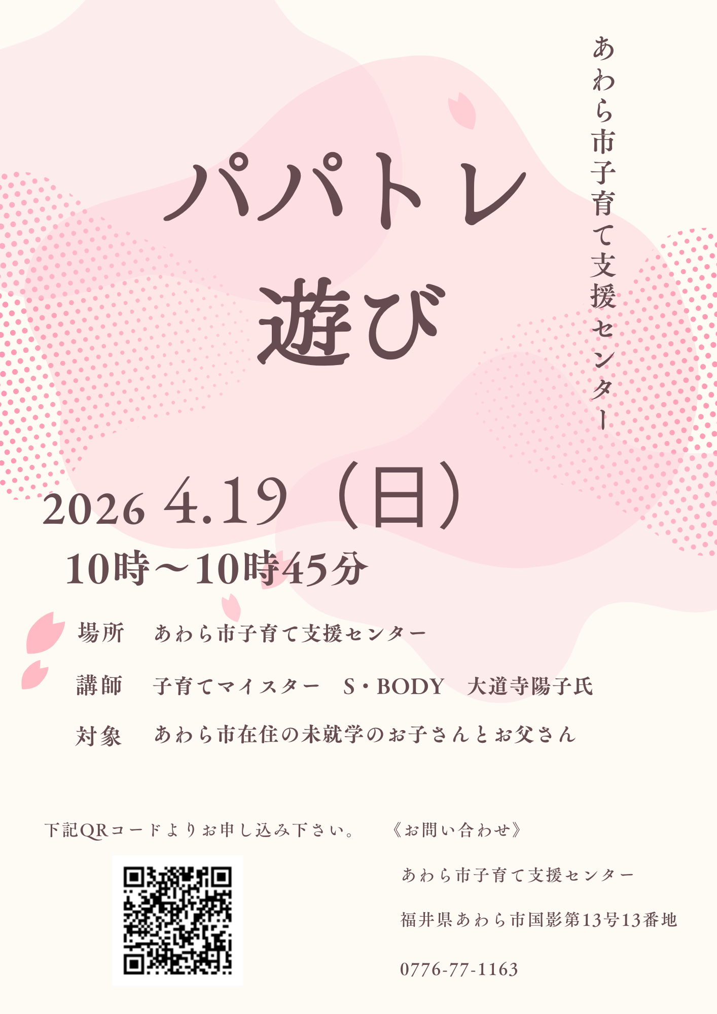 | 会場 | あわら市子育て支援センター(福井県あわら市国影第13号13番地) |