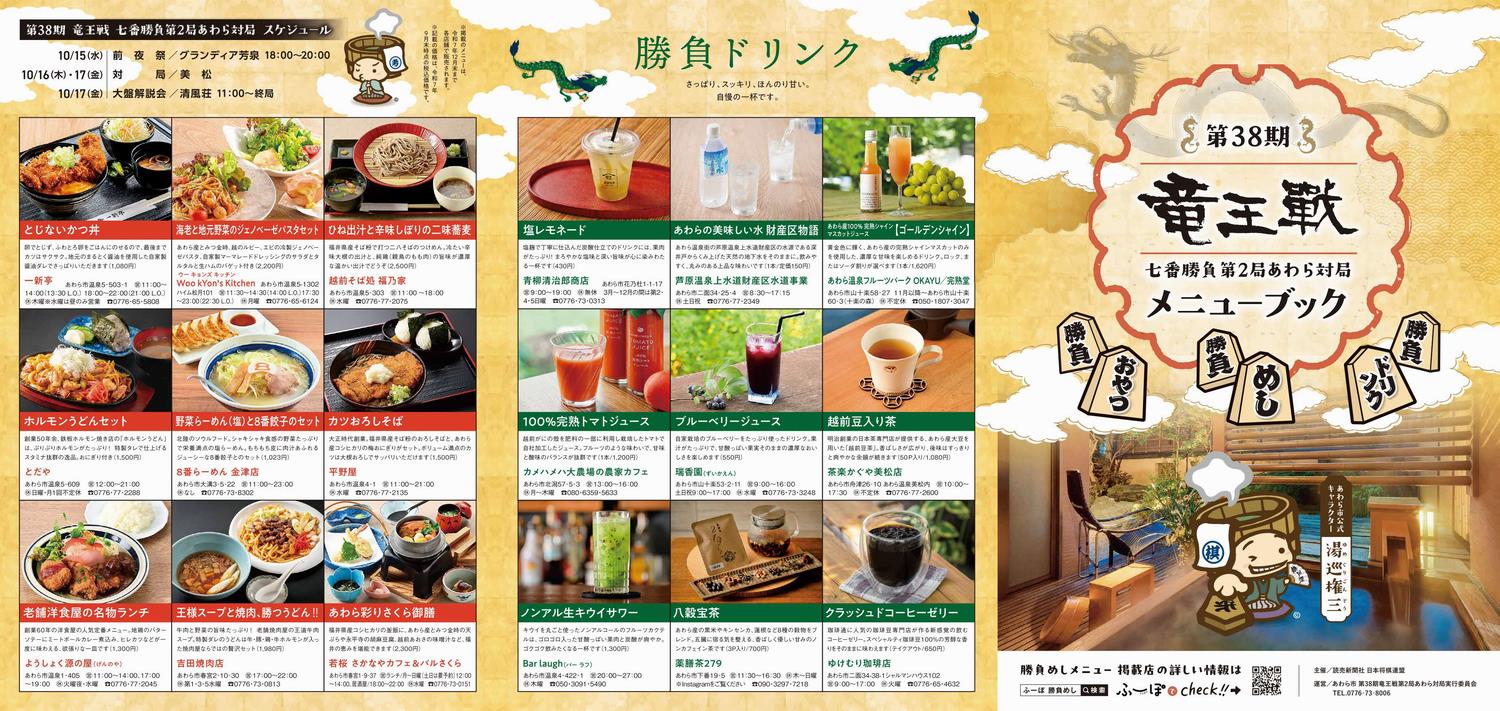 第38期竜王戦あわら勝負めしメニューブックが完成しました