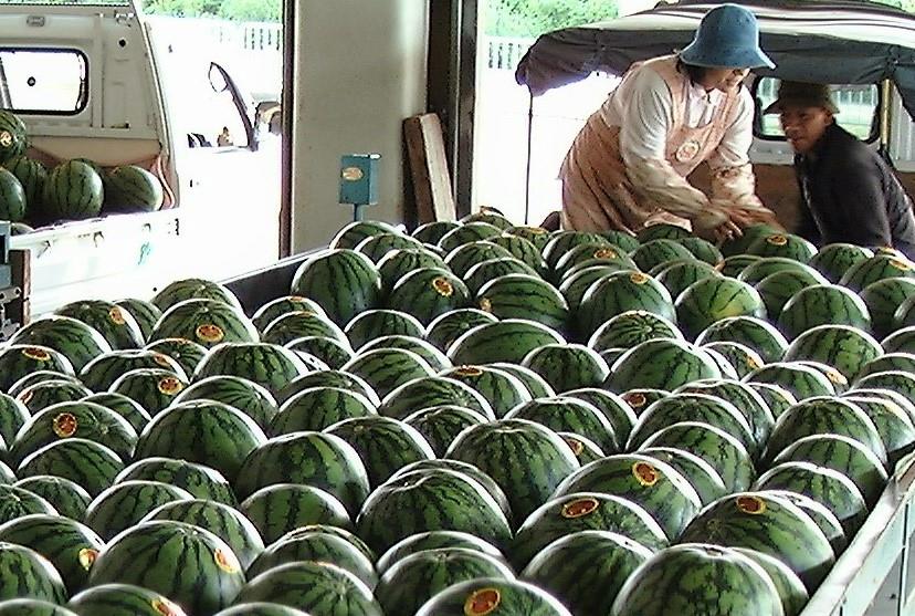 坂井北部丘陵地を主体に作られているスイカは福井県の特産品として関西市場、中京市場を中心に出荷されています。