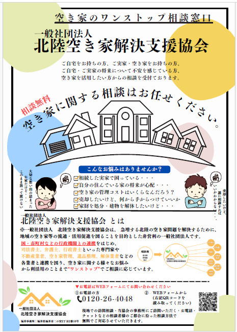 - 一般社団法人 北陸空き家解決支援協会は、令和7年3月18日にあわら市指定の空家等管理活用支援法人に指定いたしました。