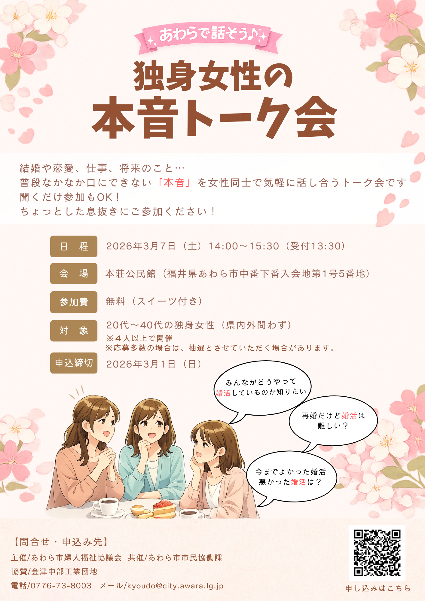 縁結びイベント「独身女性の本音トーク会」を開催します!