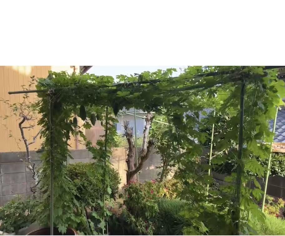 最初はすくすくと大きくなりましたが、しばらくで下から黄色くなり始めてしまいました。今年の追肥に油かす、米糠を発酵させたものを使ってみましたが、最初の肥料を沢山入れてから、油かす米糠の肥料を入れないと長く育たないようです。今年は昨年よりずっとゴーヤが沢山出来たのはよかったです。我が家は日よけとして利用しています。来年は、元肥を沢山入れてしてみたいと思います。