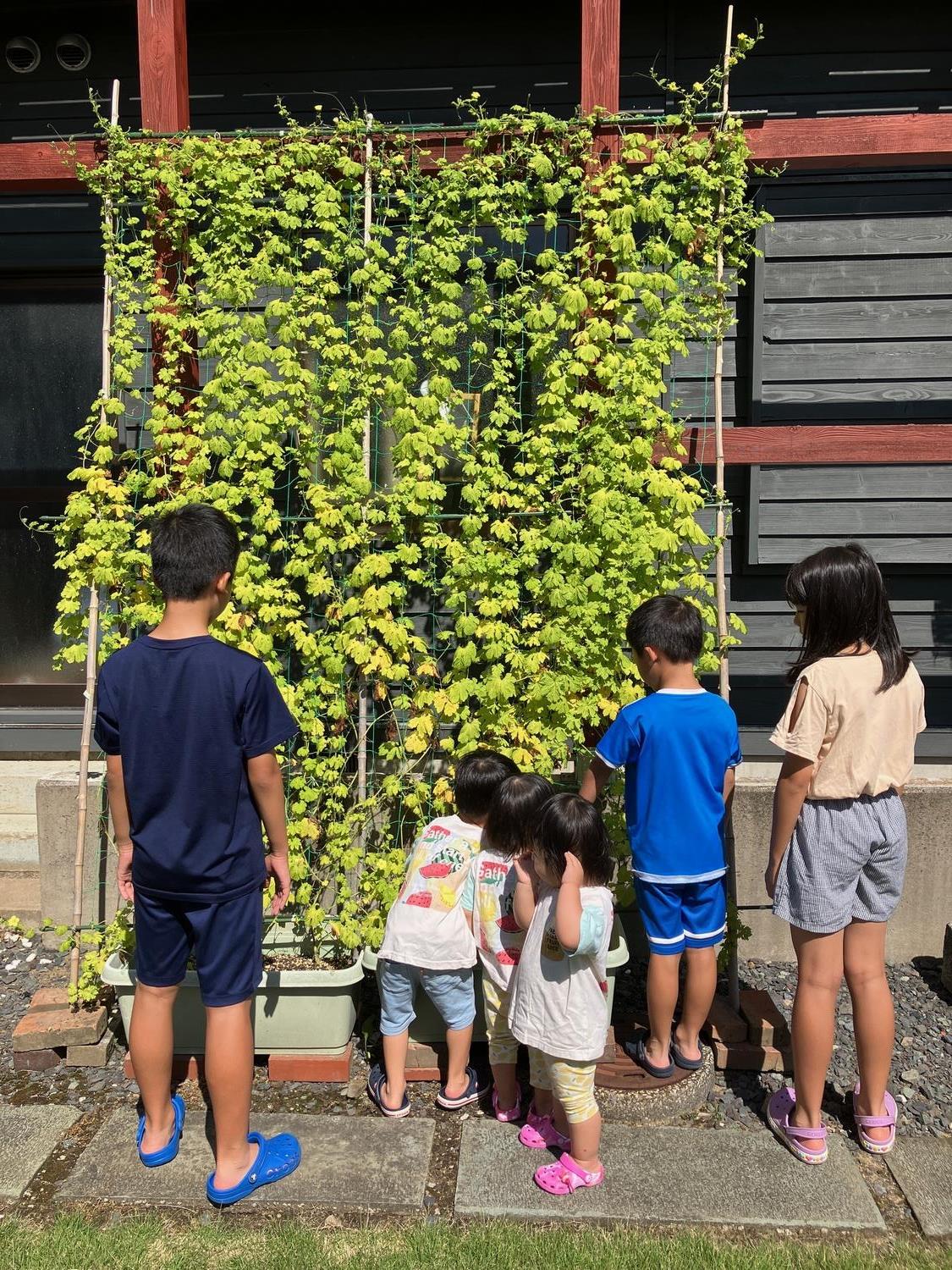 ゴーヤが全くできませんでした笑 赤ちゃんゴーヤが一つのみ💦6人の子どもたちは水やり頑張っていました!